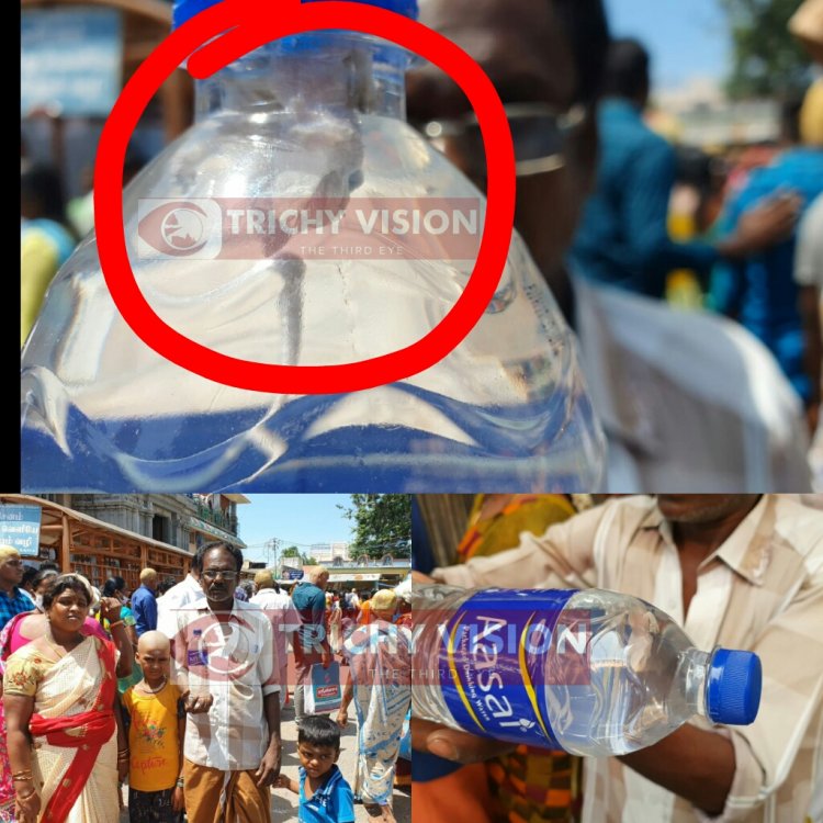 பின்னர் தண்ணீர் பாட்டில் விற்பனை செய்த வாலிபரிடம் என்னப்பா பல்லி கிடக்கிறது என கேட்டதற்கு அந்த இளைஞர் அங்கிருந்து தப்பி  ஓட்டம் பிடித்தார். இதனைத் தொடர்ந்து பல்லி கிடந்த தண்ணீர் பாட்டிலை எடுத்துக் கொண்டு பழனிச்சாமி சமயபுரம் காவல் நிலையத்தில் புகார் அளிக்க சென்றார்.