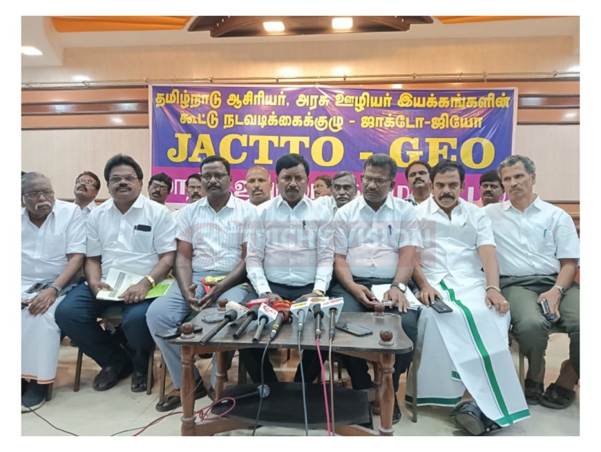 ஜாக்டோ ஜியோ அமைப்பின் மாநில உயர்மட்ட குழு கூட்டம் திருச்சியில் நடைபெற்றது. இந்த கூட்டத்தில் தமிழக அரசு புதிய பென்ஷன் திட்டத்தை கைவிட்டு பழைய பென்ஷன் திட்டத்தை நடைமுறைப்படுத்த வேண்டும், உயர்கல்விக்கான ஊக்க ஊதிய உயர்வை உடனடியாக வழங்கிட வேண்டும்,