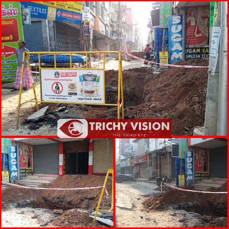 நாள் ஒன்றுக்கு பல கோடி ரூபாய் வர்த்தகம் நடைபெறும் இப்பகுதியில் குடிநீர் மற்றும் பாதாள சாக்கடை திட்டம் பணிகள் நடைபெறுவதால் வணிக நிறுவனங்கள் மூடப்பட்டு பெரும் பாதிப்பை ஏற்படுத்தியுள்ளது. இது மட்டுமில்லாமல் 5 ஆயிரத்திற்கும் மேற்பட்ட தொழிலாளர்கள் பணிக்கு வர முடியாத சூழ்நிலை ஏற்பட்டுள்ளது.