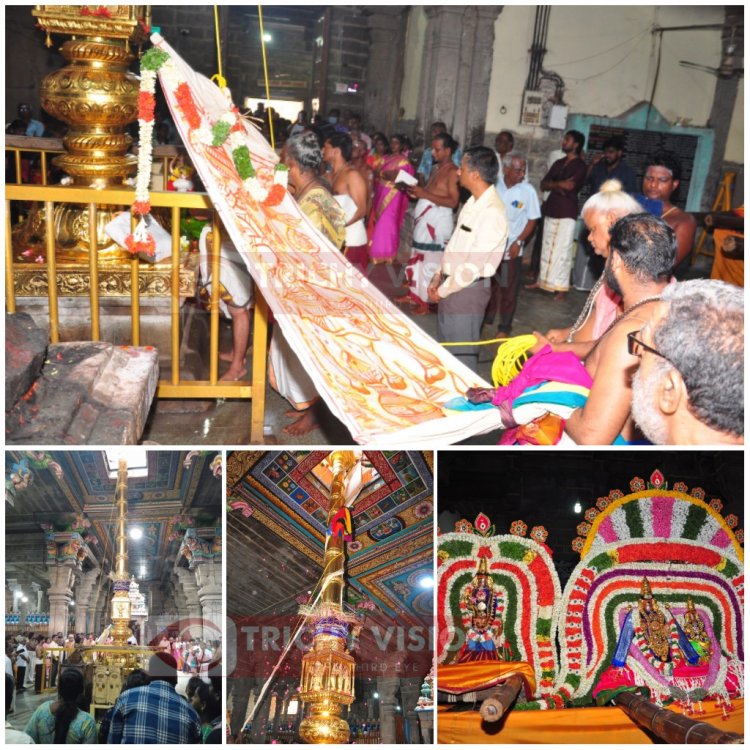 அதனைத் தொடர்ந்து இன்று காலை தாயுமானவர் சன்னதியில் உள்ள தங்க கொடிமரத்தில் சிவாச்சார்யார்கள் வேதமந்திரங்கள் முழங்க மிதுன லக்னத்தில் துவஜாரோஹணம் கொடி ஏற்றப்பட்டு, வைபவம் வெகுசிறப்புடன் தொடங்கியது. பெருந்திரளான பக்தர்கள் பங்கேற்று சுவாமியையும், அம்பாளையும் வழிபாடு செய்தனர்.