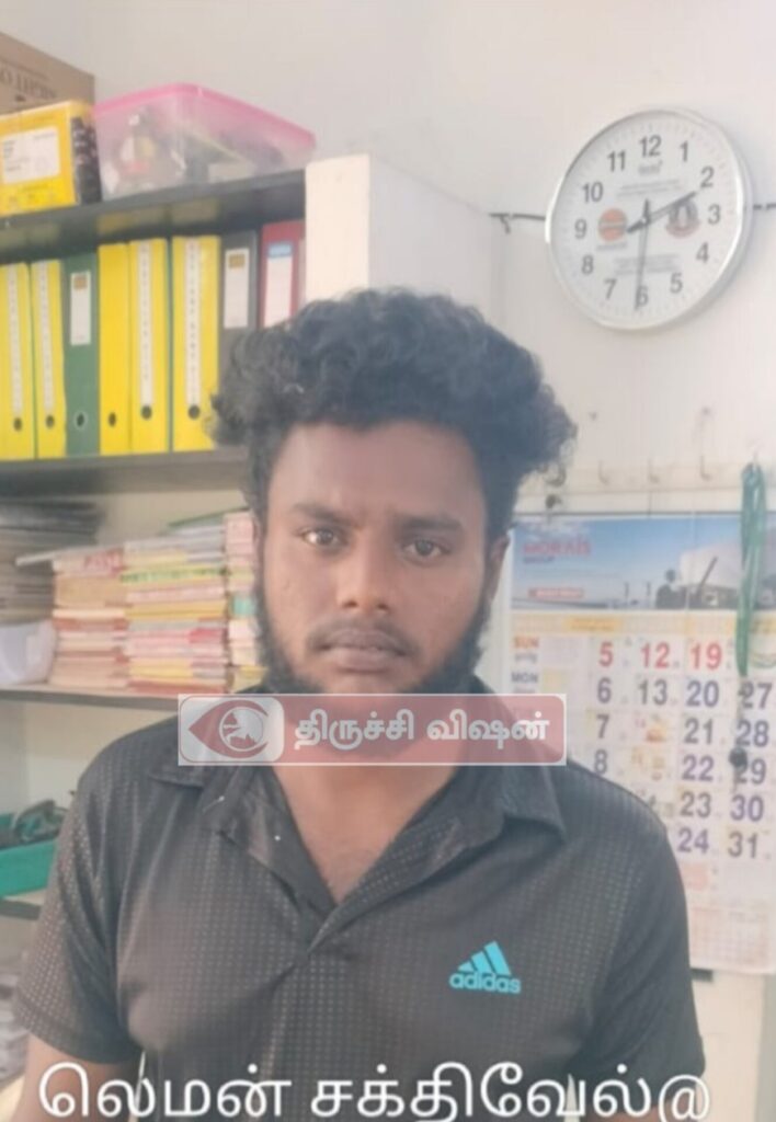 அதன் அடிப்படையில் திருவெறும்பூர் அருகே உள்ள கைலாசபுரம் கணேஷ் நகரை சேர்ந்த பாண்டியன் மகன் லெமன் சக்திவேல் (எ) சக்திவேல் ( 21 ) என்பவனை திருவெறும்பூர் போலீசார் கைது செய்துஅவனுடன் மிஷனரி பொருட்களை களவாடிய மேலும் 3 பேர் குறித்து விசாரணை மேற்கொண்டு வருகின்றனர்.