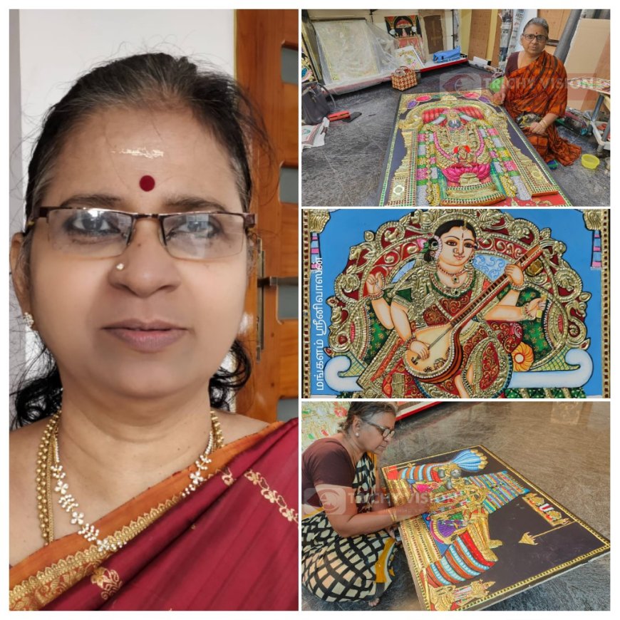 அதன்பின் என்னுடைய 48வது வயதில் என்னுடைய கணவர் கூறி தமிழ்நாடு அரசின் ஒரு வருட ஓவிய பயிற்சியில் கலந்துகொண்டேன். அதன்பின் தஞ்சாவூர் ஓவியங்களின் மீது கவனம் செலுத்த ஆரம்பித்தேன். கோலமும், ஓவியமும் தான் எனக்கு எல்லாமுமாக மாறியது. கோலத்திற்காக தினமும் 8-10 மணிநேரம் கூட நேரத்தை செலவிடுவேன். தற்போது ஓவியங்களுக்காகவும் என்கிறார்.