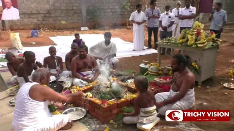 117வது நாளான இன்று(25.01.2021) அங்கு மணிமண்டபம் கட்டுவதற்கான பூமி பூஜை கணபதி, மகாலட்சுமி ஹோமத்துடன் தொடங்கியது. அதனைத் தொடர்ந்து மந்திரங்கள் முழங்க வாஸ்து ஹோமம், வாஸ்து பூஜை நடந்தது. ஸ்தபதி மகாலிங்கம் மணிமண்டபத்திற்கு அடிக்கல் நாட்டி வெண்கல செங்கல்லை வைத்து மணிமண்டப பணியை துவக்கி வைத்தார். பாஜக மாநில தலைவர் முருகன் மணிமண்டப கட்டுமான பணிக்கு நன்கொடை வழங்கினார்.