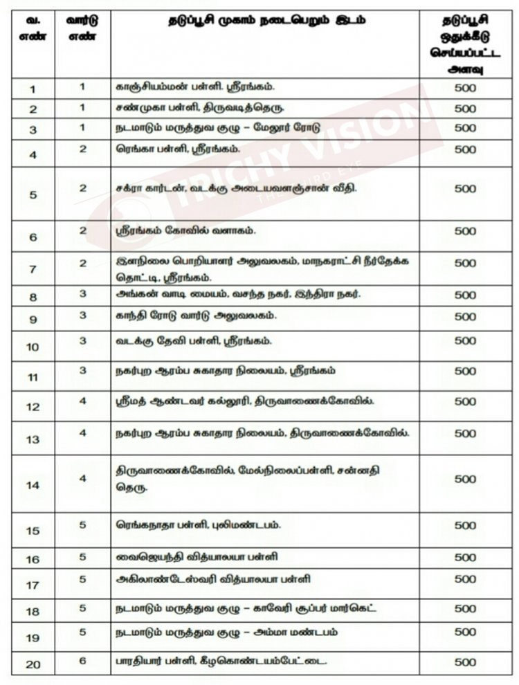 திருச்சி மாநகரில் 200 இடங்களில் இன்று (11.12.2021) மாபெரும் கோவிட் தடுப்பூசி முகாமில் கோவிசீல்டு, கோவாக்சின் தடுப்பூசிகள் போடப்படும் என மாநகராட்சி நிர்வாகம் தெரிவித்துள்ளது.