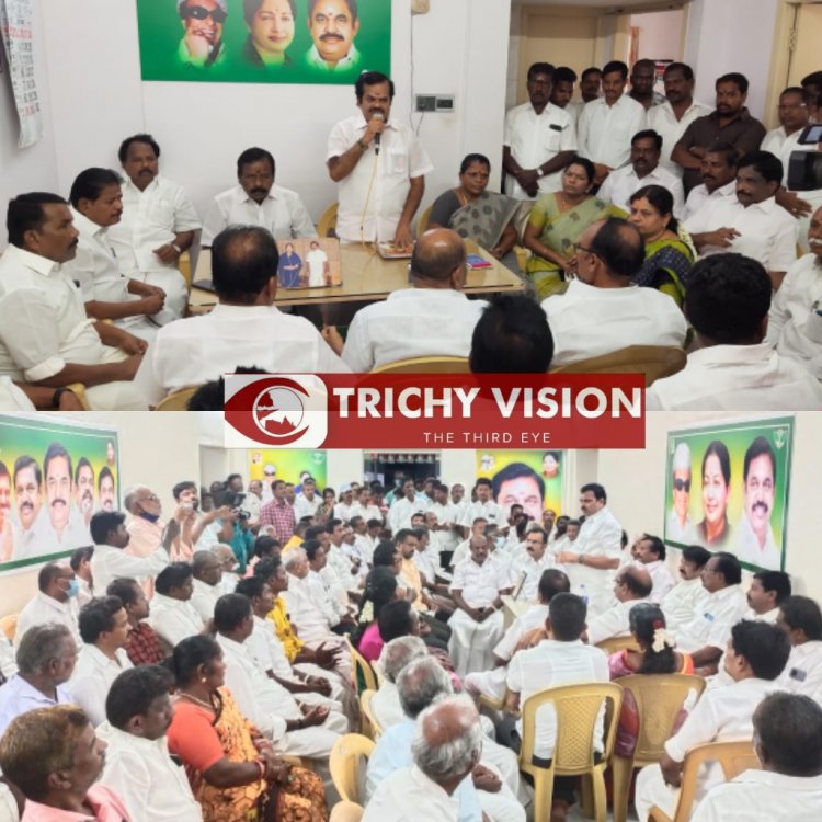 திருச்சி, தில்லைநகர், அதிமுக வடக்கு மாவட்ட கழக அலுவலகத்தில் நடைபெற்ற ஆலோசனை கூட்டத்திற்கு வடக்கு மாவட்ட கழக செயலாளர், முன்னாள் அமைச்சர் மு.பரஞ்சோதி தலைமை வகித்தார். கடந்த பதினொன்றாம் தேதி நடைபெற்ற பொதுக்குழுவில் பொதுக்குழு உறுப்பினர்களால் இடைக்கால பொதுச் செயலாளராக நியமிக்கப்பட்டுள்ள முன்னாள் முதலமைச்சர் சட்டமன்ற எதிர்க்கட்சித் தலைவர் எடப்பாடி பழனிச்சாமிக்கு வாழ்த்துக்களையும், பாராட்டுகளையும் இக்கூட்டத்தில் தெரிவித்துக் கொண்டனர். அதிமுக அமைப்பு தேர்தலில் திருச்சி புறநகர் வடக்கு மாவட்டத்தில் தேர்ந்தெடுக்கப்பட்ட நிர்வாகிகளுக்கு வாழ்த்துக்கள் தெரிவிக்கப்பட்டது.