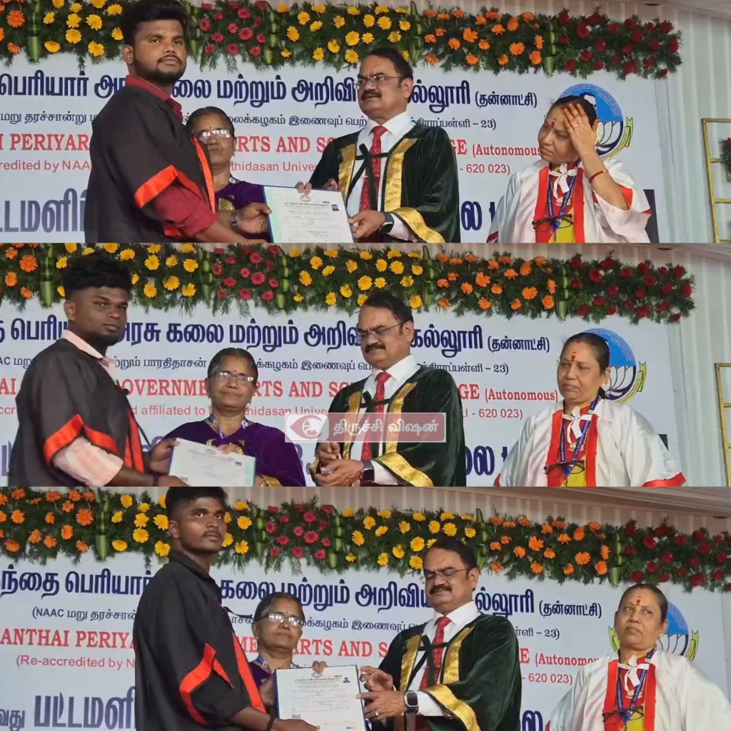 NAAC தரச்சான்றும், பாரதிதாசன் பல்கலைக்கழகம் இணைவும் பெற்று, திருச்சி காஜாமலை பகுதியில் தன்னாட்சியுடன் இயங்கிவரும் தந்தை பெரியார் அரசு கலை மற்றும் அறிவியல் கல்லூரியின் 11வது பட்டமளிப்பு விழா இன்று நடைபெற்றது.