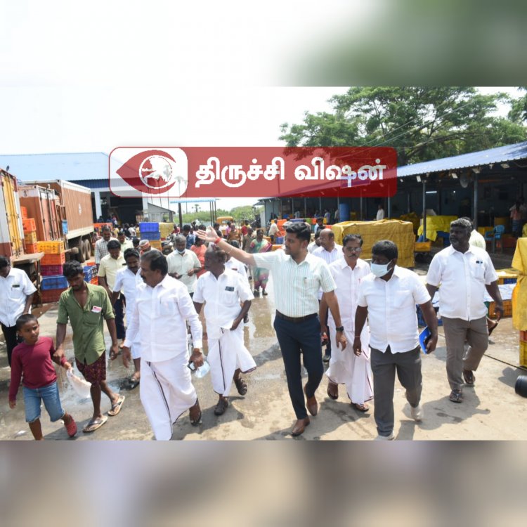 திருச்சிராப்பள்ளி மாநகராட்சி உறையூர் காசி விலங்கி மீன் மார்கெட்டில் மேயா் மு. அன்பழகன், மாநகராட்சி ஆணையர் ஆர். வைத்திநாதன் ஆகியோர் நேரில் ஆய்வு செய்தார்கள்.