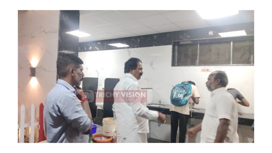 திருச்சிராப்பள்ளி மாநகராட்சி மத்திய பேருந்து நிலையத்தில் சுகாதார பணிகள் குறித்து அதிகாலை மேயர் அன்பழகன் , சுகாதார அலுவலர் வினோத் கண்ணாவுடன் திடீர் ஆய்வு மேற்கொண்டார்.