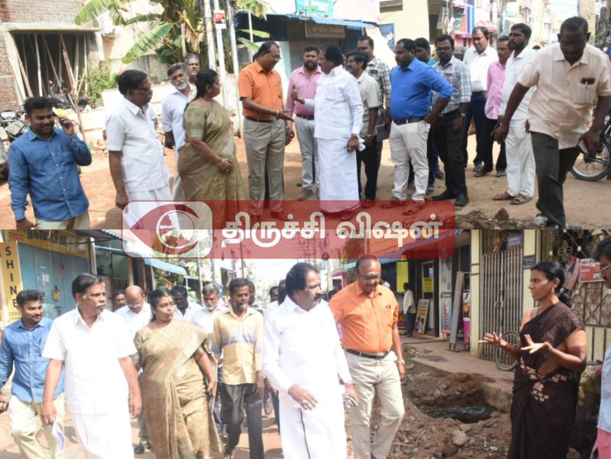 திருச்சிராப்பள்ளி மாநகராட்சி உறையூர் பாளையம் பஜார் பகுதியில் நடைபெற்று வரும் பாதாள சாக்கடை திட்டப் பணிகளை விரைந்து முடிக்க மேயர் மு.அன்பழகன் நேரில் பார்வையிட்டு பொறியாளர்களுக்கு உத்தரவிட்டார் .