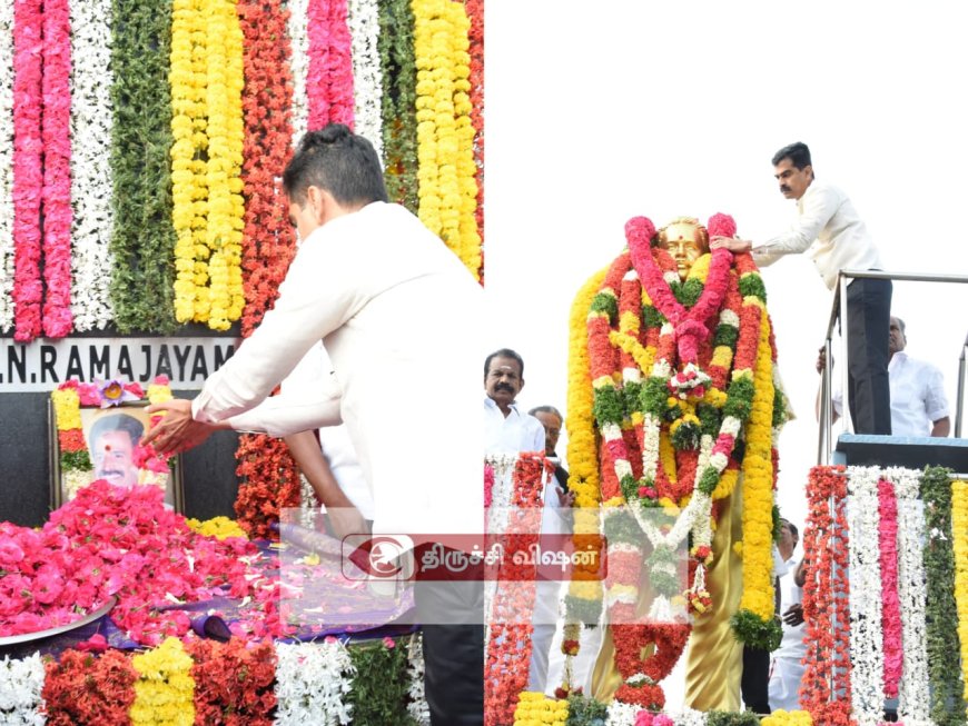 திமுக முதன்மைச் செயலாளர் – தமிழக நகர்புற வளர்ச்சித்துறை அமைச்சர் நேரு உடன்பிறந்த சகோதரரும், தொழிலதிபருமான ராமஜெயத்தின் நினைவு தினமான இன்று, திருச்சி கேர் கல்லூரி வளாகத்தில் அமைந்துள்ள அவரது சிலைக்கு மாலை அணிவித்து திருச்சி பாராளுமன்ற தொகுதி மதிமுக வேட்பாளர் துரை வைகோ மரியாதை செலுத்தினார். அமைச்சர் நேரு, பெரம்பலூர் தொகுதி திமுக வேட்பாளர் அருண் நேரு மற்றும் தி.மு.கழக மாவட்டச் செயலாளர்கள், நிர்வாகிகள் உடனிந்தனர்.