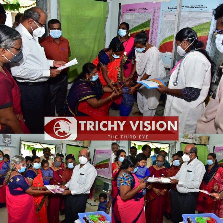 திருச்சி பெரிய மிளகுபாறை குழந்தைகள் மையத்தில் ஆறு வயதுக்குட்பட்ட குழந்தைகளுக்கான சிறப்பு மருத்துவப் பரிசோதனைத் திட்டத்தின் கீழ், 6 வயதிற்குட்பட்ட குழந்தைகளுக்கு மருத்துவப் பரிசோதனை மற்றும் ஊட்டச்சத்து குறைபாடு கண்டறிந்தல்