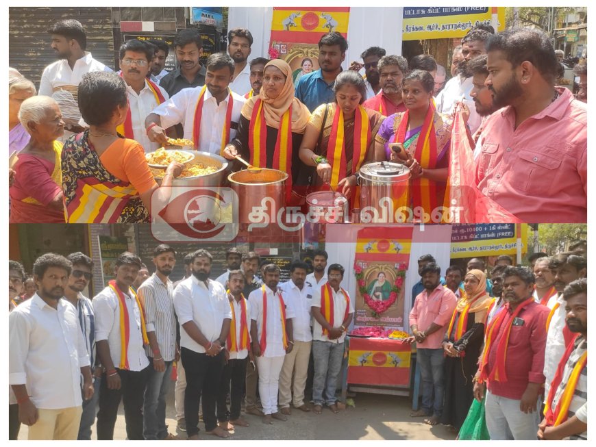 அதேபோல திருச்சி தெற்கு மாவட்டம் மலைக்கோட்டை பகுதி சார்பாக திருச்சி மாவட்ட பொறுப்பாளரும், தெற்கு மாவட்ட தலைவர் கரிகாலன் தலைமையில் , பகுதி செயலாளர் ராக்போர்ட் ராஜேஷ் ஏற்பாட்டில் அஞ்சலையம்மாள் அவர்களுக்கு அஞ்சலி செலுத்தப்பட்டது. தொடர்ந்து அன்னதானம் வழங்கப்பட்டது