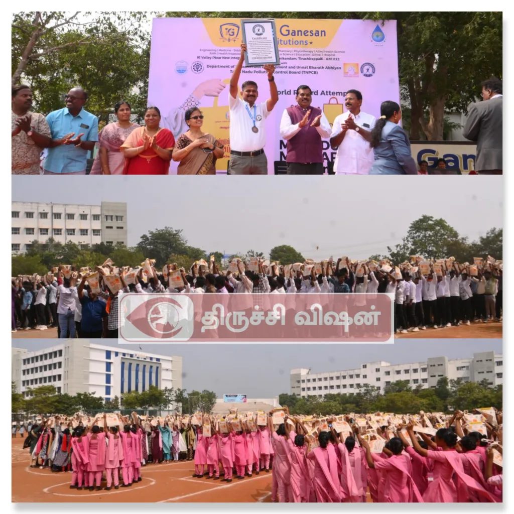 இந்திரா கணேசன் கல்வியகத்தின் ஆராய்ச்சி மற்றும் மேம்பாட்டுத் துறை மற்றும் உன்னத் பாரத் அபியான் சார்பில், “மீண்டும் மஞ்சப்பை” என்ற பெயரில் சுற்றுச்சூழல் விழிப்புணர்வு உலகச் சாதனை நிகழ்ச்சி 06.01.2026 சிறப்பாகவும் வெற்றிகரமாகவும் நடைபெற்றது.