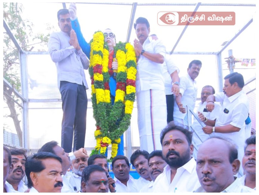 மு.மதிவாணன் தலைமையில் திருச்சி தெற்கு மாவட்ட கழக செயலாளர் பள்ளி கல்வித்துறை அமைச்சர் அன்பில் மகேஸ் பொய்யாமொழி அவர்கள் அம்பேத்கரின் திருஉருவ சிலைக்கு மாலை அணிவித்து மரியாதை செலுத்தினார்