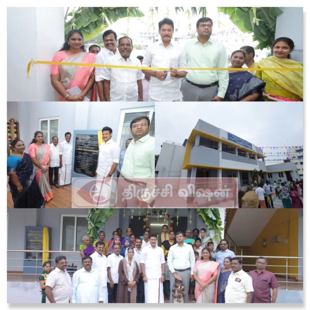 பள்ளிக்கல்வித்துறை அமைச்சர் அன்பில் மகேஸ் பொய்யாமொழி திருச்சிராப்பள்ளி மாநகராட்சிக்குட்பட்ட வேதாத்திரி நகரில் புதியதாக கட்டப்பட்டுள்ள மாநகராட்சி உருது தொடக்கப்பள்ளி மற்றும் சமையல் கூடத்துடன் கூடிய வைப்பறை கட்டிடத்தை திறந்து வைத்தார்.