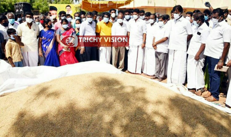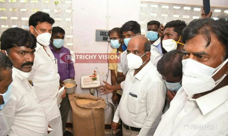 திருச்சி மாவட்டம் திருவெறும்பூர் வட்டம் பெரிய சூரியூரில் நெல் கொள்முதல் பணிகளை மாவட்ட ஆட்சித்தலைவர் சு.சிவராசு தலைமையில், பள்ளி கல்வித்துறை அமைச்சர் அன்பில் மகேஷ் பொய்யாமொழி இன்று தொடங்கி வைத்தார்.