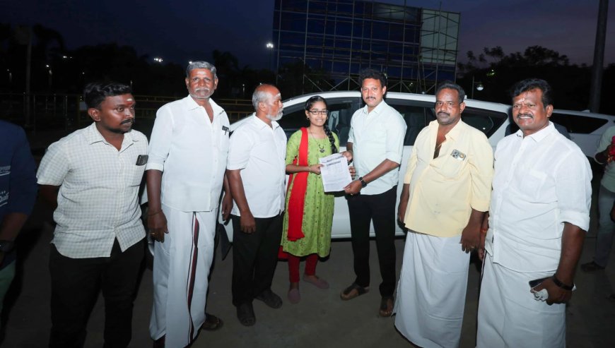 மாணவியிடம் உயர் கல்வியை சிறப்பான முறையில் தேர்வு செய்து உயர்ந்த நிலைக்கு வர அமைச்சர் தனது வாழ்த்துக்களை தெரிவித்தார் . இந்தநிகழ்வில் மாநகர செயலாளர் மதிவாணன், வட்ட செயலாளர் கருணாநிதி, மாணவியின் தந்தை கணேசன் ஆகியோர் உள்ளனர்.