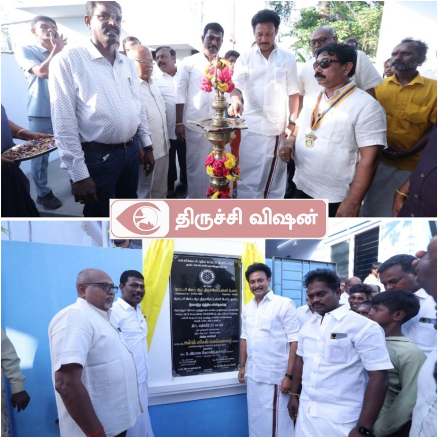 அமைச்சர் அன்பில் மகேஸ் பொய்யாமொழி , திருச்சி மாவட்டம், மணிகண்டம் ஒன்றியம், அதவத்தூரில் செயல்படும் முத்துராஜா மான்ய நடுநிலைப்பள்ளியில் ரோட்டரி கிளப் ஆப் திருச்சிராப்பள்ளி ஃபோர்ட் சார்பில் ரூ.25 லட்சம் மதிப்பீட்டில் கட்டப்பட்டுள்ள