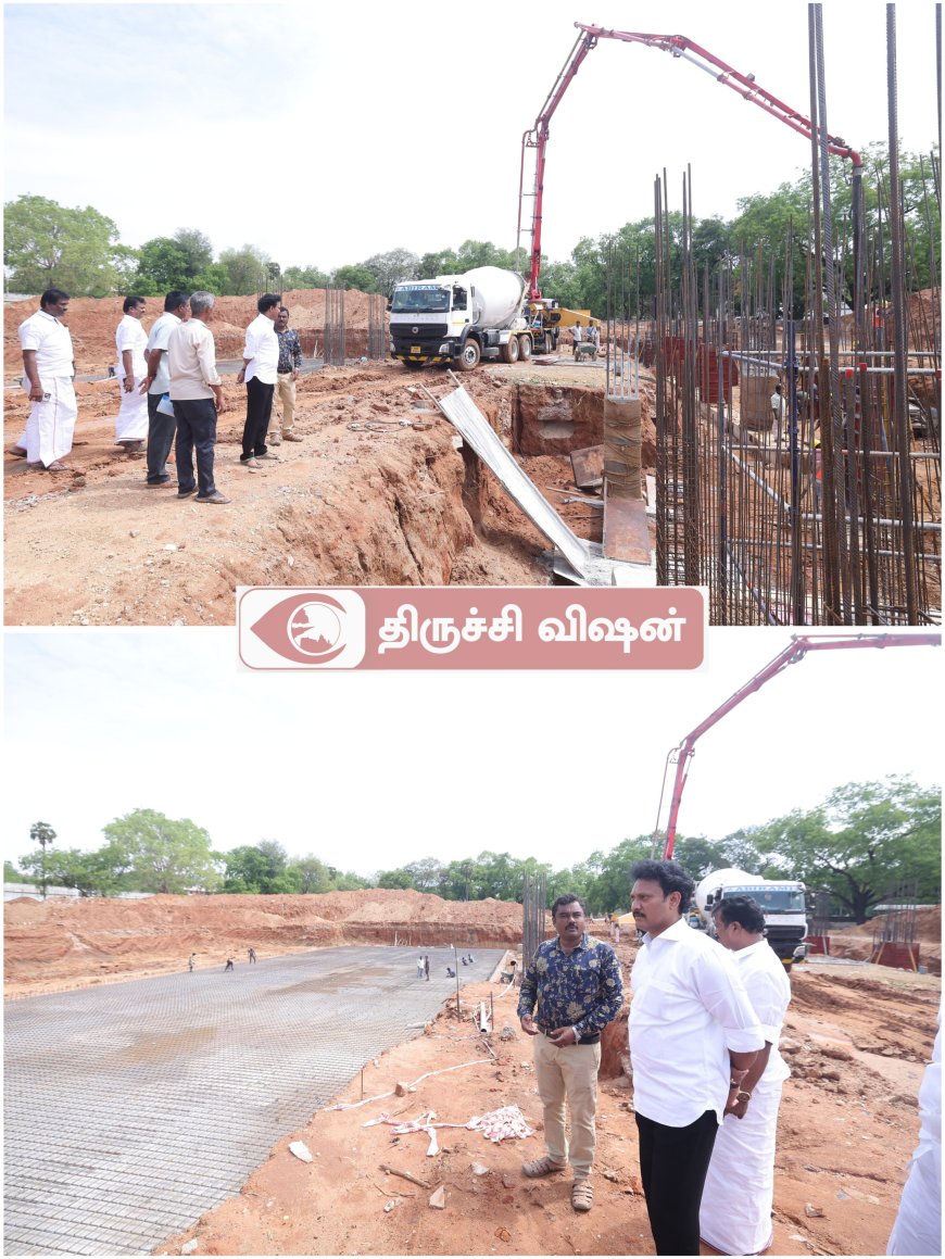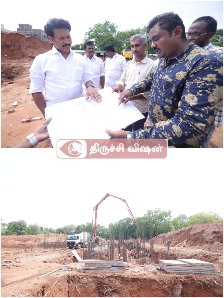 வசதிகளுடன் அமைய உள்ளது.அதன் தொடர்ச்சியாக முழுவீச்சில் நடைபெற்றுவரும் கட்டுமான பணிகளை பள்ளிக்கல்வித்துறை அமைச்சர் அன்பில் மகேஸ் பொய்யாமொழி இன்று நேரில் ஆய்வு செய்தார்.
