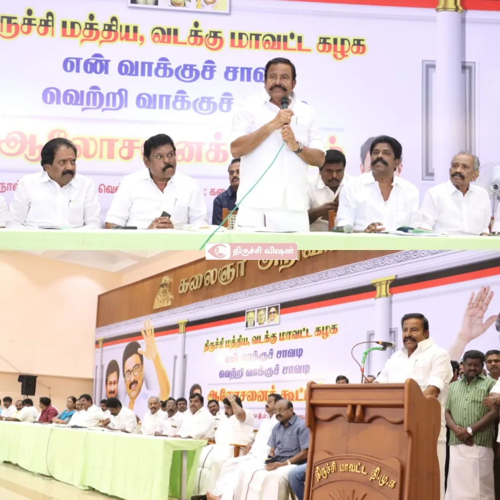 திருச்சி மத்திய மற்றும் வடக்கு மாவட்ட திமுக சார்பில் “என் வாக்குசாவடி, வெற்றி வாக்குச்சாவடி” எனும் தேர்தல் ஆலோசனை கூட்டம் இன்று நடைபெற்றது.