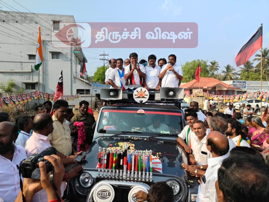 பெரம்பலூர் பாராளுமன்ற தொகுதிக்கு உட்பட்ட முசிறி , மண்ணச்சநல்லூர் சட்டமன்றத் தொகுதியில் கழக முதன்மைச் செயலாளரும் நகராட்சி நிர்வாகத்துறை அமைச்சருமான கே.என்.நேரு, கழக வேட்பாளர் அருண் நேருவிற்காக உமையாள்புரம், வெள்ளூர், சாலப்பட்டி, காமாட்சிபட்டி, தொட்டியபட்டி, வெள்ளாளப்பட்டி, ராசிபுரம் உட்பட்ட பகுதிகளில் கழக அரசின் சாதனைகளை கூறி உதயசூரியன் சின்னத்திற்கு வாக்குகள் சேகரித்தார்.