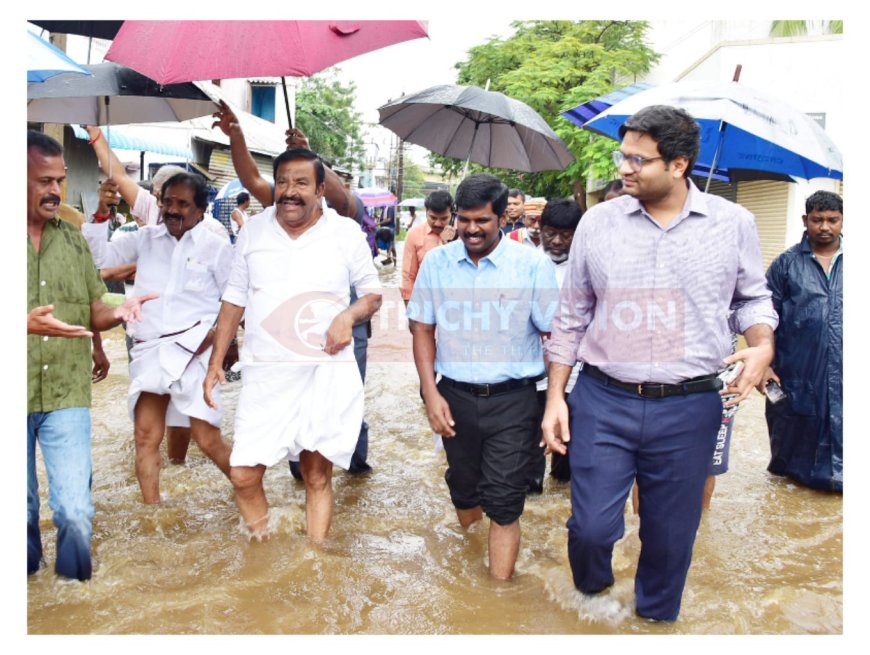 இதுபற்றி தகவல் அறிந்த நகராட்சி நிருவாகத்துறை அமைச்சர் கே.என்.நேரு இன்று நேரில் ஆய்வு செய்தார். தொடர்ந்து திருச்சி மாநகரில் பல்வேறு பகுதிகளை பார்வையிட்ட அவர் உடனடியாக மழைநீர் வெளியேற்றுவதற்கான பணிகளை மேற்கொள்ளூமாறு மாநகராட்சி அதிகாரிகளுக்கு உத்தரவிட்டார்.