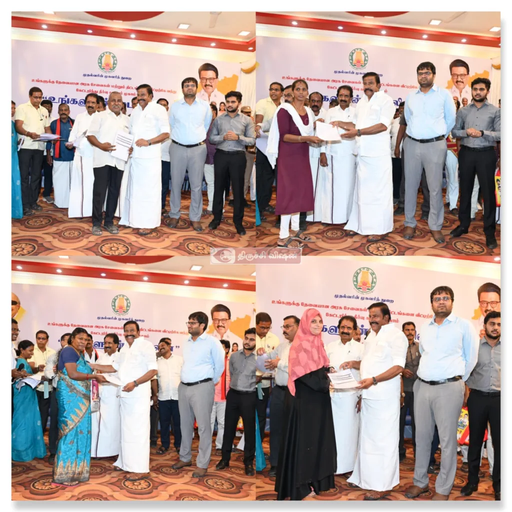 நகராட்சி நிருவாகத்துறை அமைச்சர் கே.என்.நேரு அவர்கள் இன்று (30.10.2025) திருச்சிராப்பள்ளி மாநகராட்சி மண்டலம் 4 வார்டு எண் 58 க்குட்பட்ட கிராப்பட்டி புனித குழந்தை தெரசாள் மக்கள் மன்றத்தில் நடைபெற்ற உங்களுடன் ஸ்டாலின் திட்ட முகாமில் பொதுமக்களிடமிருந்து பெறப்படும் கோரிக்கை மனுக்கள் பதிவேற்றம் செய்வதையும் முகாமின் செயல்பாடுகளையும் நேரில் பார்வையிட்டு ஆய்வு மேற்கொண்டு பொதுமக்களுடன் கலந்துரையாடி பயனாளிகளுக்கு நலத்திட்ட உதவிகளை வழங்கினார்.
