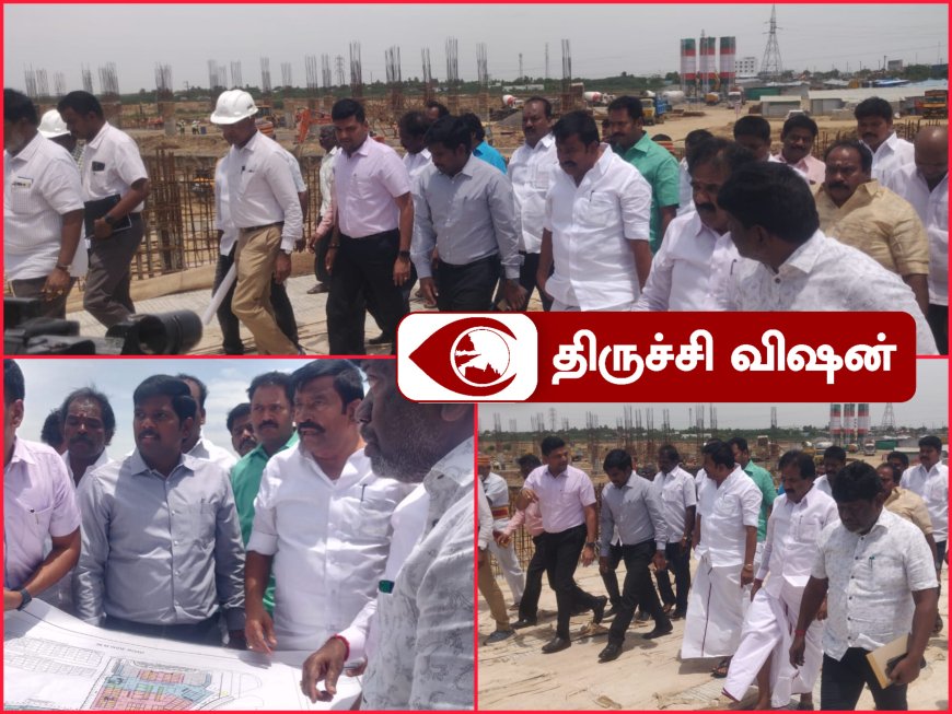 திருச்சியில் எடமலைப்பட்டி புதூர் பகுதியில் சிறப்பு மருத்துவ முகாமை துவக்கி வைத்து பின்னர் பஞ்சப்பூரில் கட்டப்பட்டு வரும் ஒருங்கிணைந்த பேருந்து நிலையத்தை அமைச்சர் கே.என்.நேரு, மாவட்ட ஆட்சியர், மாநகராட்சி ஆணையர் உள்ளிட்டோர் ஆய்வு செய்தனர்.