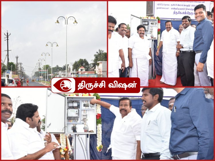 மாண்புமிகு நகராட்சி நிருவாகத் துறை அமைச்சர் கே.என்.நேரு  திருச்சிராப்பள்ளி திருவானைக்கோயில் சென்னை ட்ரங்க் ரோடு பேருந்து நிலையம் முதல் சென்னை புறவழிச்சாலை வரையிலான சாலைகளின் மையப்  பகுதியிகளில் மாநகராட்சியின் பொது நிதியிலிருந்து ரூபாய் 88.75 இலட்சம் மதிப்பீட்டில் அமைக்கப்பட்டுள்ள 150 வாட்ஸ் திறன் கொண்ட 56 ஹெரிடேஜ் வகையிலான  மின்சார சேமிப்பு எல்இடி விளக்குகள்  செயல்பாட்டினை இன்று (18.04.2023)  தொடங்கி வைத்தார்.
