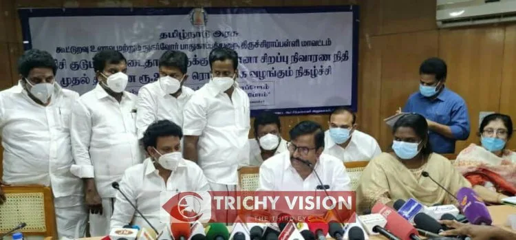 கொரோனா வைரஸ் தடுப்பு நடவடிக்கைகள் முன்னேற்றம் குறித்த ஆய்வு கூட்டம் திருச்சி மாவட்ட ஆட்சியர் அலுவலகத்தில் நடைபெற்றது. இக்கூட்டத்தில் ஊரக வளர்ச்சித்துறை அமைச்சர் கே.என்.நேரு, பள்ளிக்கல்வித்துறை அமைச்சர் மகேஷ் பொய்யாமொழி மற்றும் 7 சட்டமன்ற உறுப்பினர்களும் பங்கேற்று அதிகாரிகளோடு இன்று ஆலோசனை நடத்தினார்கள்.