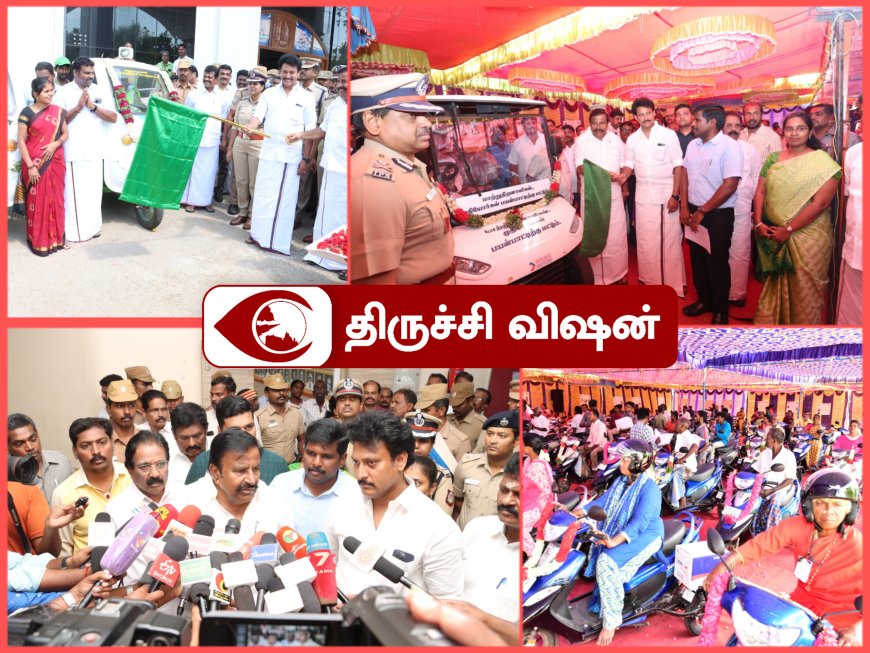 திருச்சி மாவட்ட ஆட்சியர் அலுவலகத்தில் மாவட்ட மாற்றுத்திறனாளிகள் நலத்துறை சார்பில்மாவட்ட ஆட்சியர் பிரதீப்குமார் தலைமையில் நடைபெற்ற நிகழ்ச்சியில் தமிழ்நாடு நகராட்சிநிர்வாகத்துறை அமைச்சர் கே.என்.நேரு, பள்ளிக்கல்வித்துறை அமைச்சர் மகேஸ் ஆகியோர் ரூபாய் 50,10.000 மதிப்பிலான இணைப்பு சக்கரம் பொருத்திய வாகனங்களை 60பயனாளிகளுக்கு வழங்கினார். இதே போல் கலைஞர் நகர்புற மேம்பாட்டு திட்டத்தின் சார்பில் திருச்சி மாவட்டத்தில் உள்ள அனைத்து பேரூராட்சிகளுக்கும் ரூபாய் 47 லட்சத்து 19,000 செலவில் குப்பை அள்ளும் வாகனங்களையும் அமைச்சர்கள் வழங்கினார்கள்.