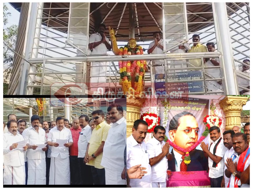 திருச்சியில் அண்ணல் அம்பேத்கரின் 134 வது பிறந்த நாளை முன்னிட்டு, மத்திய பேருந்து நிலையம் அருகில் உள்ள அவரது திருவுருவ சிலைக்கு திமுக முதன்மைச் செயலாளரும் நகராட்சி நிர்வாக துறை அமைச்சர் அமைச்சருமான கே என் நேரு தலைமையில் திமுகவினர் மாலை அணிவித்து மரியாதை செய்தனர்.