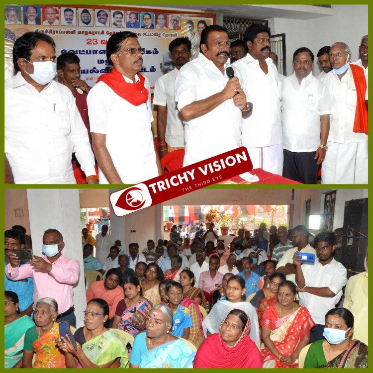திமுக தலைமையிலான மதச்சார்பற்ற முற்போக்கு கூட்டணியில் அங்கம் வகிக்கும் இந்திய கம்யூனிஸ்ட் கட்சி சார்பில் திருச்சி மாநகராட்சி 23வது வார்டு மாமன்ற உறுப்பினர் பதவிக்கு போட்டியிடும் க. சுரேஷ்குமார் அவர்களை அறிமுகப்படுத்தியும் கதிர் அரிவாள் சின்னத்திற்கு வாக்களிக்க கோரியும் பிப்ரவரி 6 காலை 11 மணிக்கு உறையூரில் நடைபெற்ற செயல்வீரர்கள் கூட்டத்தில் கலந்துகொண்டு திமுக முதன்மைச் செயலாளரும் நகர்ப்புற வளர்ச்சித் துறை அமைச்சருமான மாண்புமிகு கே .என். நேரு அவர்கள் பங்கேற்று உரையாற்றி வாக்கு சேகரித்தார்.