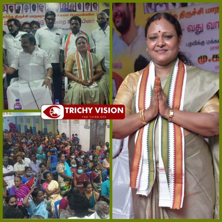 திருச்சி மாநகராட்சி 24 வது வார்டு உள்ளாட்சித் தேர்தல் செயல்வீரர்கள் கூட்டம் நடைபெற்றது. இதில் திமுக தலைமையிலான மதசார்பற்ற முற்போக்கு கூட்டணியில் காங்கிரஸ் சார்பில் போட்டியிடும் பொறியாளர் பேட்ரிக் ராஜ்குமார் மனைவி சோபியா விமலா ராணி அறிமுக கூட்டம் நடைபெற்றது.