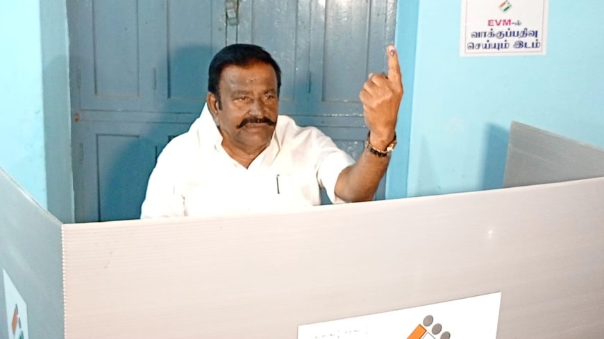 திருச்சியில் அமைச்சர் நேரு வாக்களித்த பிறகு செய்தியாளர்களை சந்தித்தார்.