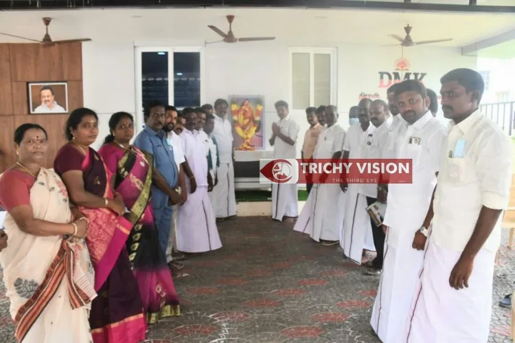 சுதந்திர போராட்ட வீரர் ஒண்டிவீரரின் 250வது நினைவு தினத்தை முன்னிட்டு திருச்சி தெற்கு மாவட்ட திமுக சார்பில் திருச்சி தெற்கு மாவட்ட கழக அலுவலகத்தில் வைக்கப்பட்டிருந்த மாவீரன் ஒண்டிவீரனின் திருவுருவப் படத்திற்கு மாலை அணிவித்து மரியாதை செலுத்தப்பட்டது.