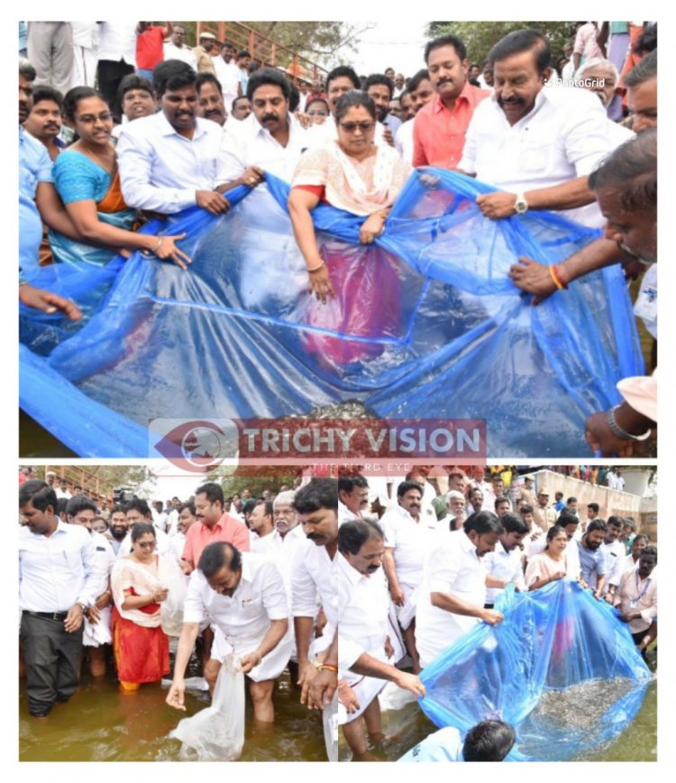 காவிரி மற்றும் கொள்ளிடம் ஆற்றில் மீன்குஞ்சுகளை விட்ட அமைச்சர்