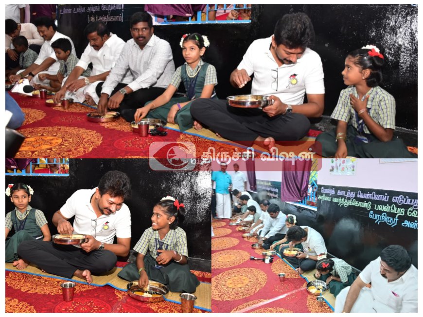 இளைஞர் நலன் மற்றும் விளையாட்டுத் துறை அமைச்சர் உதயநிதி திருச்சிராப்பள்ளி மாவட்டம் ஸ்ரீரங்கம் வட்டம், அல்லூர் பாரதி துவக்கப் பள்ளியில் முதலமைச்சரின் காலை உணவு திட்டத்தினை ஆய்வு மேற்கொண்டார். அல்லூரில் அரசு உதவி பெறும் பாரதி தொடக்கப்பள்ளியில் அமைச்சர் உதயநிதி 20 மாணவர்களுடன் அமர்ந்து காலை உணவு சாப்பிட்டார் மாணவர்களுடன் உணவு தரம் குறித்தும் உரையாடினார். பின்னர் துறையூர் வட்டம், தென்புறநாடு ஊராட்சி, புத்தூர் குக்கிராமத்தில் அடிப்படை வசதிகள் தொடர்பாக ஆய்வு மற்றும் நலத்திட்ட உதவிகள் வழங்கி பயனாளிகளுடன் கலந்துரையாட உள்ளார்.