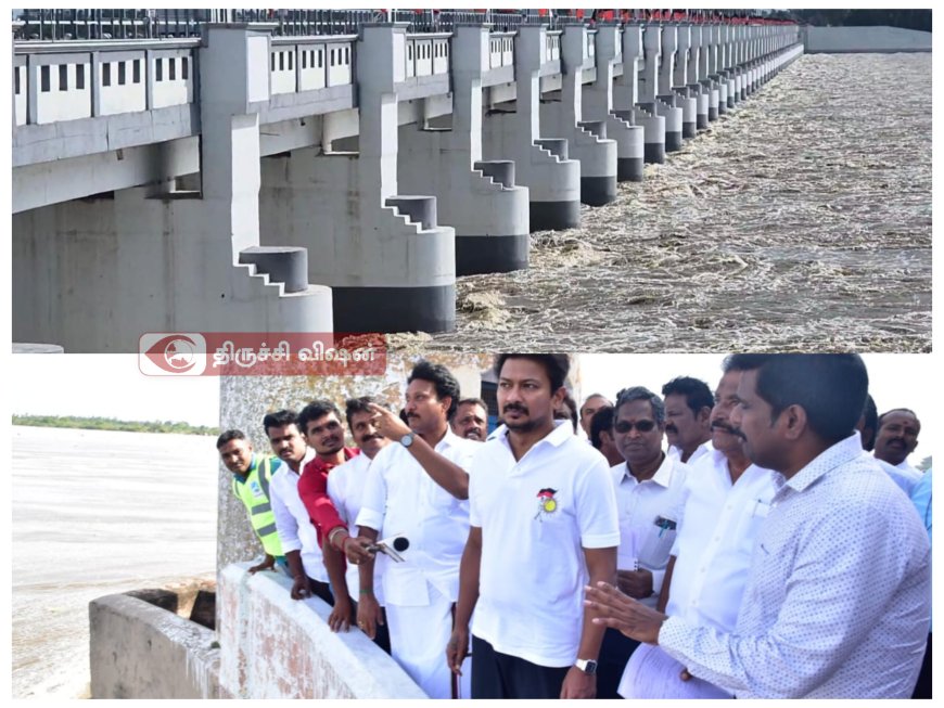திருச்சி முக்கொம்பில் அமைச்சர் உதயநிதி – ஆர்ப்பரித்து வரும் நீரை ஆய்வு