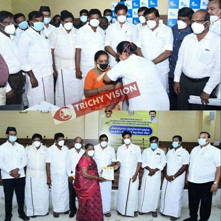திருச்சி மாவட்ட ஆட்சியர் அலுவலகத்தில் நடைபெற்ற தொழிலாளர் நலத்துறையின் சார்பில் அமைப்புசாரா தொழிலாளர் நலவாரிய உறுப்பினர்கள் 2202 நபர்களுக்கு ரூபாய் 34.87 லட்சம் மதிப்பிலான நலத்திட்ட உதவிகளை வழங்கினர்.