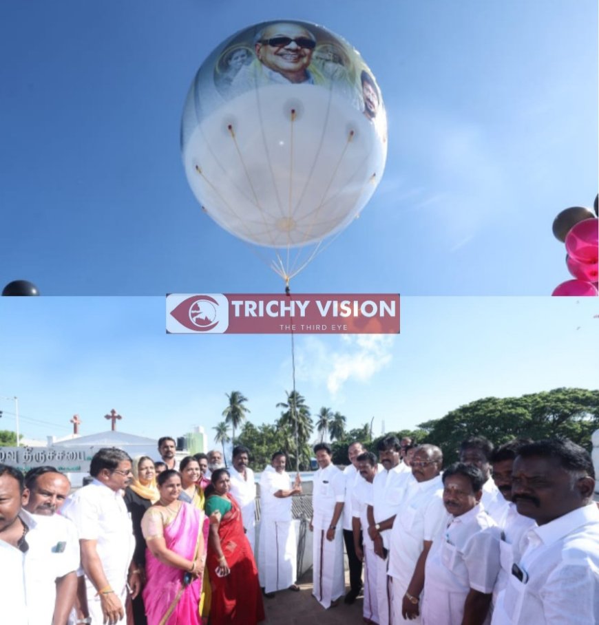 திருச்சியில் ராட்சத பலூன் பறக்கவிட்ட அமைச்சர்கள்