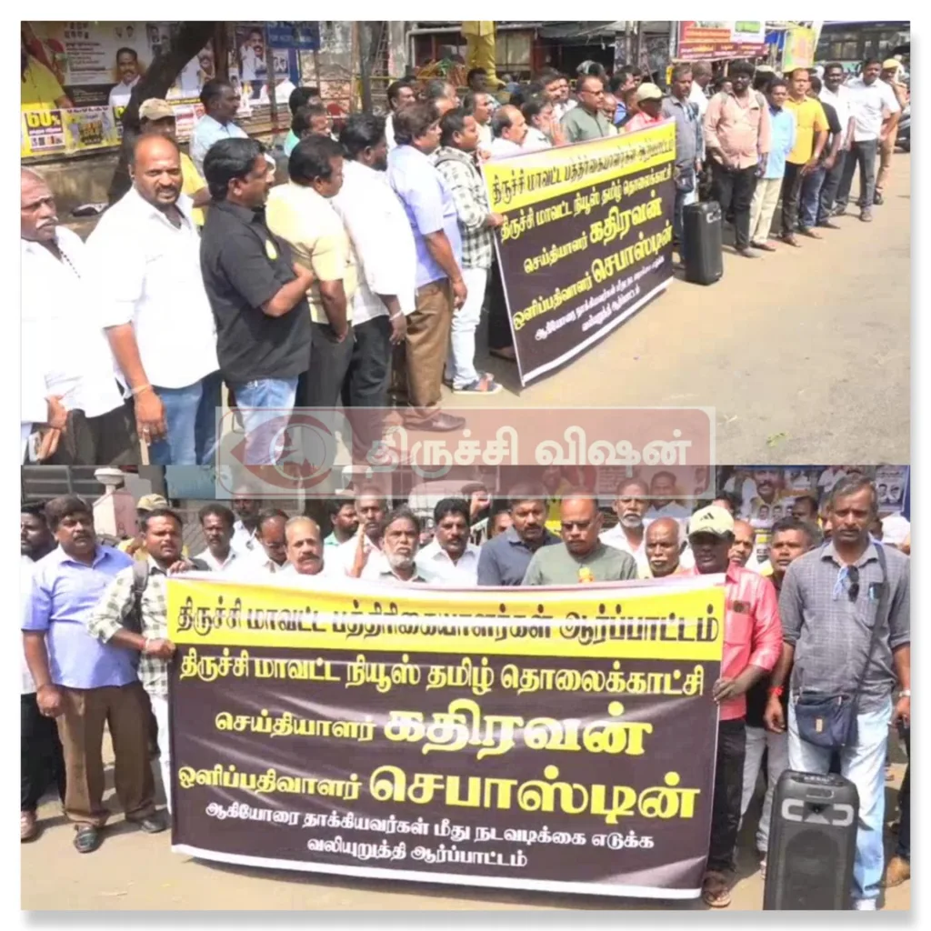 இந்த கொலைவெறி தாக்குதலை கண்டித்து திருச்சி மாவட்ட பத்திரிகையாளர்கள் ஒன்றிணைந்து கண்டன ஆர்ப்பாட்டத்தில் ஈடுபட்டனர் தமிழ்நாடு முதலமைச்சர் உடனடியாக சட்டமன்ற உறுப்பினர் தனது கட்சியாக இருந்தாலும் அவர் மீது சட்ட நடவடிக்கை எடுக்க வலியுறுத்த வேண்டும் பத்திரிக்கையாளர்களின் உரிமையைப் பறித்து குரல்வலையை நெரிக்கும் இந்த செயலை வன்மையாக கண்டிப்பதாக பத்திரிக்கையாளர்கள் இந்த ஆர்ப்பாட்டத்தில் குறிப்பிட்டனர்.