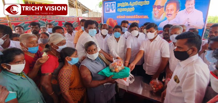 திருச்சி மாவட்டம் மண்ணச்சநல்லூர் சட்டமன்ற தொகுதிக்குட்பட்ட  துளையாநத்தம், மற்றும் மங்கலம் ஊராட்சி பகுதிகளில் கொரோனா காலகட்டத்தில்  வாழ்வாதாரம் பதித்த ஏழை,எளியோருக்கு அரிசி, காய்கறிகள் உள்ளிட்ட நலத்திட்ட உதவிகளும், ஊராட்சி துப்புரவு பணியாளர்களுக்கு அரிசி,காய்கறிகள், சேலை உள்ளிட்ட நலத்திட்ட உதவிகள் என ரூ. 5 லட்சம் மதிப்பில் 400 க்கும் மேற்பட்டோருக்கு மண்ணச்சநல்லூர் எம்எல்ஏ கதிரவன் தனது சொந்த செலவில் வழங்கினார்.