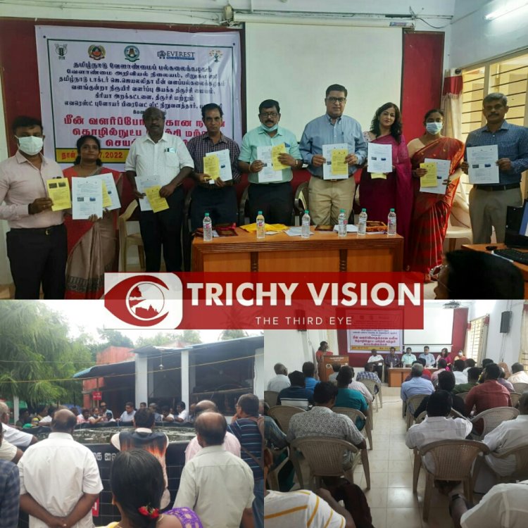 இந்நிகழ்ச்சிக்கு தலைமை தாங்கிய சிறுகமணி வேளாண்மை அறிவியல் நிலைய திட்ட ஒருங்கிணைப்பாளர் முனைவர் என் தமிழ்செல்வன் மீன் பழங்காலத்திலிருந்தே இயற்கை ஆதாரங்களில் இருந்து பெறப்பட்ட ஒரு மலிவான மற்றும் எளிதில் செரிமானத்திற்கு ஏற்ற புரதம் நிறைந்த மற்றும் மனிதர்களுக்கு ஏற்ற உணவாகும் விவசாயிகள் எளிதான முறையில் கிராமத்தில் குளம் நீர் தொட்டி அல்லது மற்ற நேரங்களிலும் மீன் வளர்ப்பை கொண்டு தங்களது நிதித் தேவையை பூர்த்தி செய்துகொள்கின்றனர்.