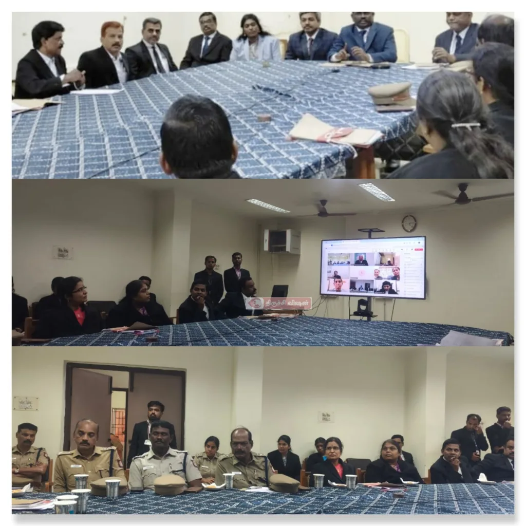 நேற்று 26.09.2025 மாலை புதிய நீதிமன்ற வளாகத்தில்  மாண்புமிகு உயர் நீதிமன்ற அறிவுறுத்தலின்படி மாதாந்திர ஆய்வு கூட்டம் மாவட்ட நீதிபதி M. கிறிஸ்டோபர் அவர்கள் தலைமையில் நடைபெற்றது நிகழ்ச்சியில் நீண்ட காலமாக நிலுவையில் உள்ள வழக்குகள், நிலுவையில் உள்ள முதல் தகவல் அறிக்கை 28735 எண்ணிக்கையில் உள்ளதால் இதன் மீது உடனடியாக கவனம் செலுத்தி செயல்பட வேண்டும் என்றும் மற்றும் நிலுவையில் உள்ள 2123 பிணையில் வெளிவர முடியாத பிடியானை ஆகியவற்றை விரைந்து செயல்படுத்த வேண்டும் என்று அனைத்து காவல்துறையினருக்கும், நீதிபதிகளுக்கு நேரிலும் காணொளி மூலமாகவும் மற்றும்  அதிகாரிகளுக்கு மாவட்ட நீதிபதி அறிவுறுத்தினார். மேலும் நீதிபதிகளுக்கும் அறிவுறுத்தல்களும் மாவட்ட நீதிபதியால்  அறிவுறுத்தப்பட்டன. மணப்பாறை, முசிறி, லால்குடி மற்றும் பல நீதிமன்றத்தில் இருந்து நீதிபதிகள்  காணொளி மூலமாக கலந்து கொண்டனர் நிகழ்ச்சியில் நீதிபதிகள் சுவாமிநாதன், சரவணன், வெங்கடேசன், கார்த்திகா, சண்முகப்பிரியா அரசு வழக்கறிஞர்கள் சவரிமுத்து, மோகன் திருச்சி மாவட்டத்தில் உள்ள காவல்துறை உதவி ஆணையர்கள், மாவட்ட ஆட்சியாளர் சட்ட அலுவலக உதவியாளர் பாண்டியன்,   குற்றவியல் வழக்கறிஞர் சங்க செயலாளர் P. V. வெங்கட் ஆகியோர் கலந்து கொண்டனர்.