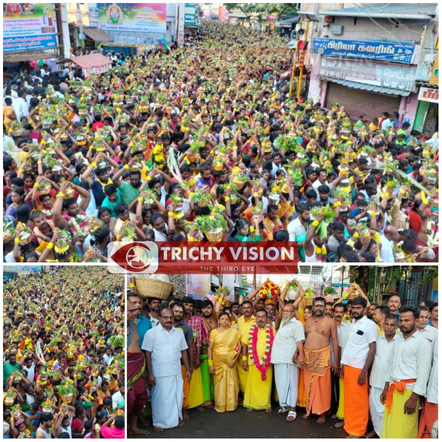 இதில் 25 ஆயிரத்திற்கும் மேற்பட்ட பக்தர்கள் பால்குடங்கள் சுமந்து வந்து அம்மனுக்கு நேர்த்திக்கடன் செலுத்தினர். அதேபோல் குழந்தை வரம் வேண்டுபவர்கள் கரும்புத்தொட்டில் கட்டி வந்து அம்மனுக்கு நேர்த்திக்கடன் செலுத்தினர். அனைத்து பால்குடங்களும் கோவிலுக்கு வந்தடைந்தபின் 3 லட்சம் லிட்டர் பாலால் அம்மனுக்கு பால் அபிஷேகம் செய்யப்பட்டது.
