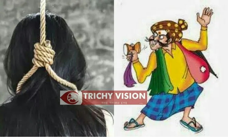 பின்னர் பரிகாரம் செய்வதாக கூறி சுகந்தியை ஏமாற்றிவிட்டு நகைகளை குடுகுடுப்பைக்காரன் எடுத்து சென்றுள்ளான். ஏமாந்து போன அந்தப் பெண் தன் கணவரிடம் நடந்ததை கூறி அழுது புலம்பியுள்ளார். நகை பறி போனதால் தொடர்ந்து மன உளைச்சலில் இருந்த சுகந்தி நேற்று கணவர் வேலைக்கு சென்று இந்த நிலையில் வீட்டில் தூக்குமாட்டி தற்கொலை செய்து கொண்டார். வீட்டிற்கு திரும்பிய ஜெகன், மனைவி தூக்கில் தொங்கியதை கண்டு அதிர்ச்சி அடைந்து உடனடியாக காவல் நிலையத்திற்கு தகவல் தெரிவித்தனர்.