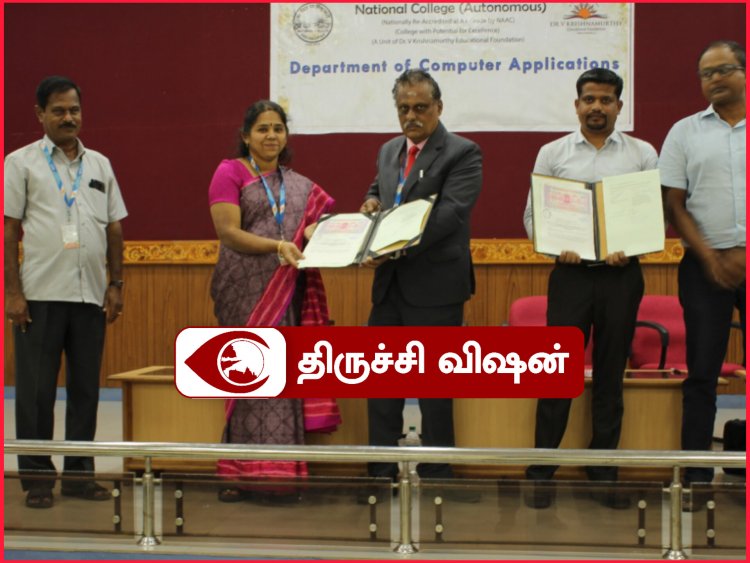 திருச்சி தேசியக் கல்லூரியின் கணினி பயன்பாட்டுத் துறை, 09 ஜனவரி 2023 திங்கட்கிழமை ஏசி-ஆடிட்டோரியத்தில் புரிந்துணர்வு விழாவை நடத்தியது. டாக்டர் கோ.ஸ்ரீநாகன்யா வரவேற்பு உரையாற்றினார். கணினி பயன்பாட்டுத் துறைத் தலைவர் டாக்டர் மு.அனுஷா தலைமை விருந்தினர்களை அறிமுகப்படுத்தினார். கல்லூரி முதல்வர் டாக்டர் கே.குமார் தலைமை உரையாற்றினார்.