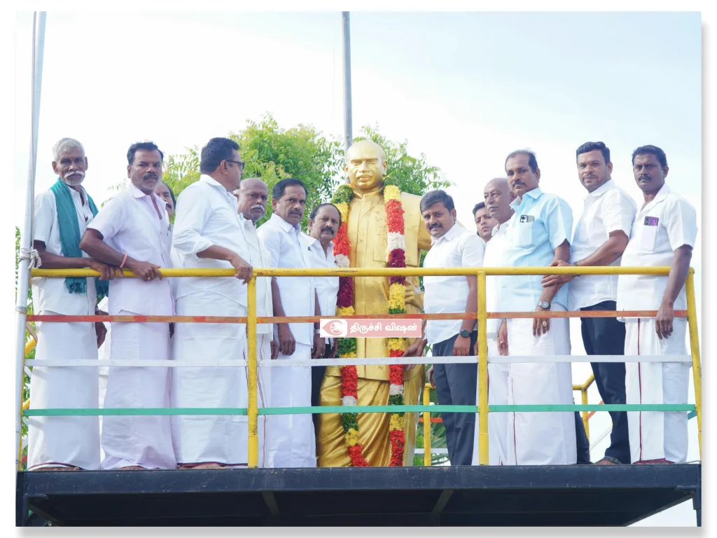 திருச்சியில் லால்குடி ஒன்றியத்திற்குட்பட்ட புள்ளம்பாடியில் பெரம்பலூர் பாராளுமன்ற உறுப்பினர் அருண் நேரு பெருந்தலைவர் காமராஜர் அவர்களின் நினைவு நாளை முன்னிட்டு அவரது திருவுரு சிலைக்கு மாலை அணிவித்து