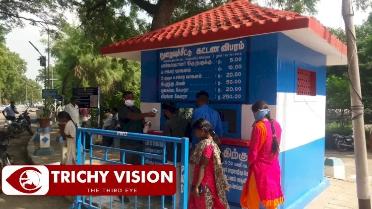 திருச்சி முக்கொம்பு சுற்றுலா தளம் இன்று காலை திறக்கப்பட்டது. தெர்மல் ஸ்கேனர் மூலம் சுற்றுலாப் பயணிகளின் உடல் வெப்ப பரிசோதனை மேற்கொள்ளப்பட்டது.